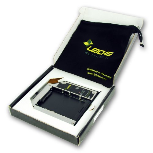 Der herausragende Vorteil des LEICKE 2. HDD/SSD Adapters ist die LEICKE Hyperspeed Technologie, die extra für SSD optimiert wurde.Der LEICKE Festplatten-Adapter 2nd Generation eignet sich perfekt zur Datensicherung, Spiegelung, Kapazitätserweiterung bis 2000 GB oder für eine zweite bootfähige Festplatte. Mit dem HDD Adapter können Sie eine zweite Festplatte in Ihr Notebook integrieren. Zum Installieren des Adapters ist ein freier Laufwerkseinschub nötig. Sollte kein Einschub frei sein, entfernen Sie das CD-/DVD-Laufwerk. Anstelle des Laufwerks können Sie dann den Adapter installieren und mit den mitgelieferten Schrauben befestigen.