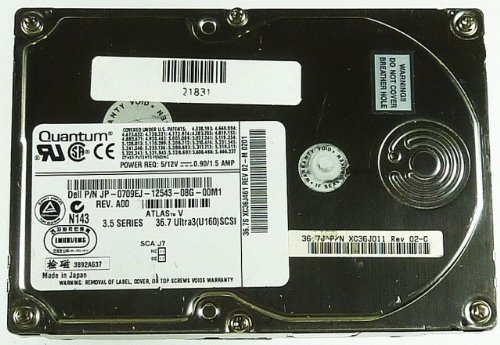 36,7GB Festplatte Lucent Quantum 'ATLAS V JP-0709EJ' Ultra160 80-polig SCSI, 8,9cm (3,5')dpn: JP-0709EJ-12543-08G-00M. Anschluss 80-polig SCA. Die Festplatte ist in tadellosem Zustand und wird unformatiert geliefert.
